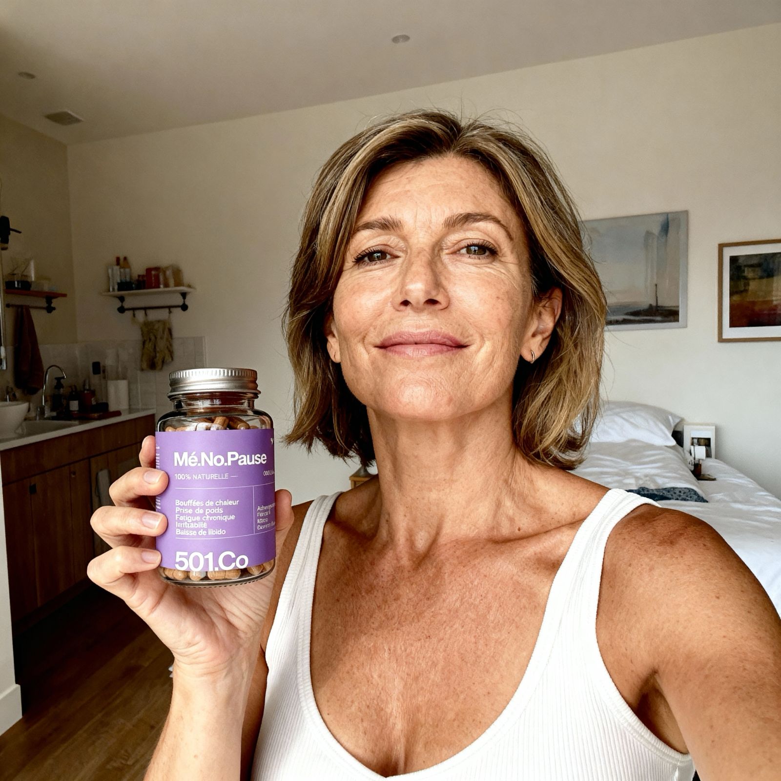 Notre formule ne se contente pas de masquer les symptômes. Elle agit en profondeur pour accompagner votre corps pendant toute la période de la ménopause, sans accoutumance ni effets indésirables. Une prise simple, chaque jour, pour retrouver un équilibre durable et reprendre le contrôle de votre bien-être féminin, naturellement.